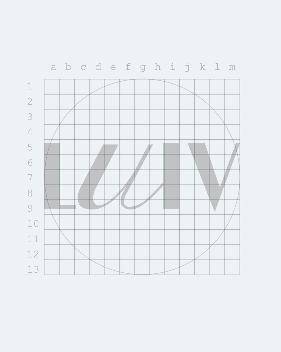 Esse dimensionamento deveria ocorrer sem alterar a composição do projeto inicial, mantendo assim, o fundamento da ideia intacta. A IMX construiu a identidade da LUIV como uma marca única (na forma mais pura da palavra, sem truísmos) e a construiu de forma sofisticada e elegante. Pra isso os designers usaram uma tipografia que se destaca na linguagem de marcas de grife absoluta. A forma como foi desenhado as letras, dando um certo destaque a uma fonte sans-serif finas e a letra 'u' em itálico, tornaram o Logo da LUIV algo totalmente fora da curva nesse contexto de atuação, como dito antes, feito pra hoje e para o futuro.