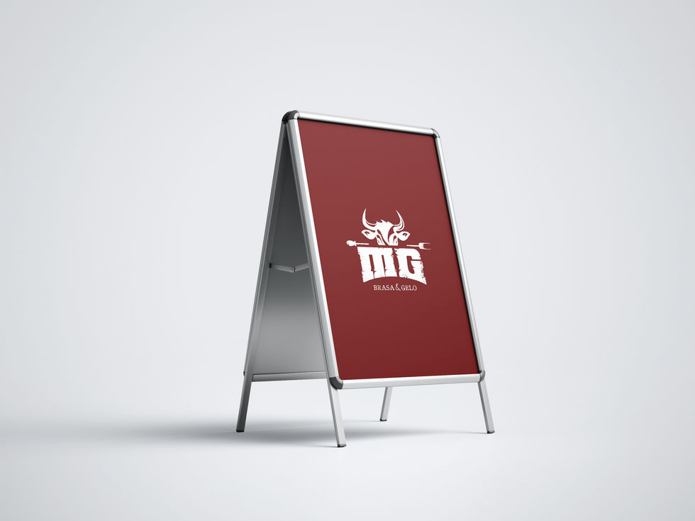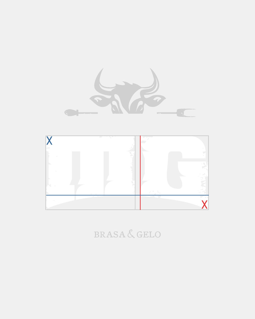 Nossos designers desenvolveram o símbolo com a face de um touro para representar o produto, que será de maior expectativa de comercialização. A identidade estende-se a vestígios de brasas na letra M e G que lembram o fogo. A assinatura remete a produtos base Brasa&Gelo